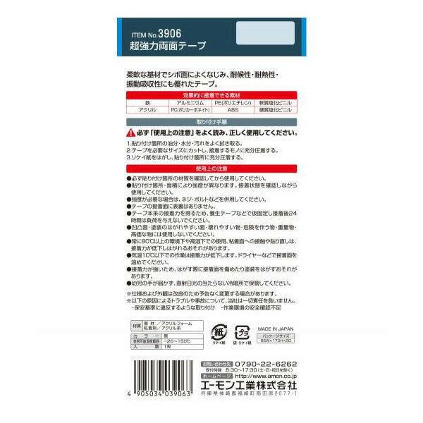 ※接着力が強いため、はがす際に接着面を傷めたり塗装をはがすおそれがあります。