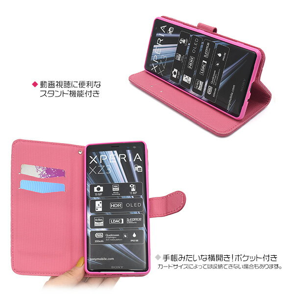 製品仕様 対応機種 Xperia XZ3 SO-01L/SOV39/801SO 素材 合皮(PUレザー)/TPU カラー ビビッドピンク/ホワイト/ブラック/ブルー サイズ(約) 縦162×横82×厚さ18mm 重さ(約) 72g 注意 ※本製品はマグネットを使用しておりますのでクレジットカードなどの磁気カードの収納は避け、カードの注意事項をよくご確認の上ご使用ください。