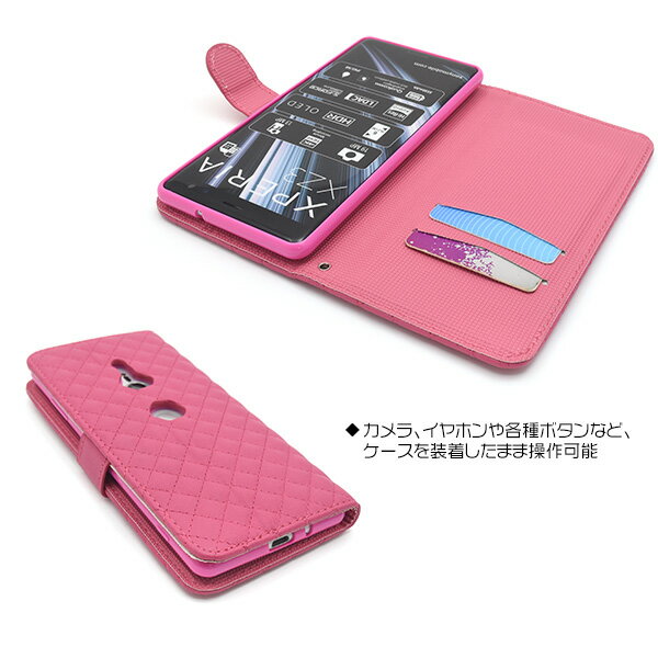 高級感溢れるXperia XZ3 SO-01L/SOV39/801SO用キルティングレザー手帳型ケース 触り心地抜群のキルティングレザーを使用したオシャレな手帳型ケースです。