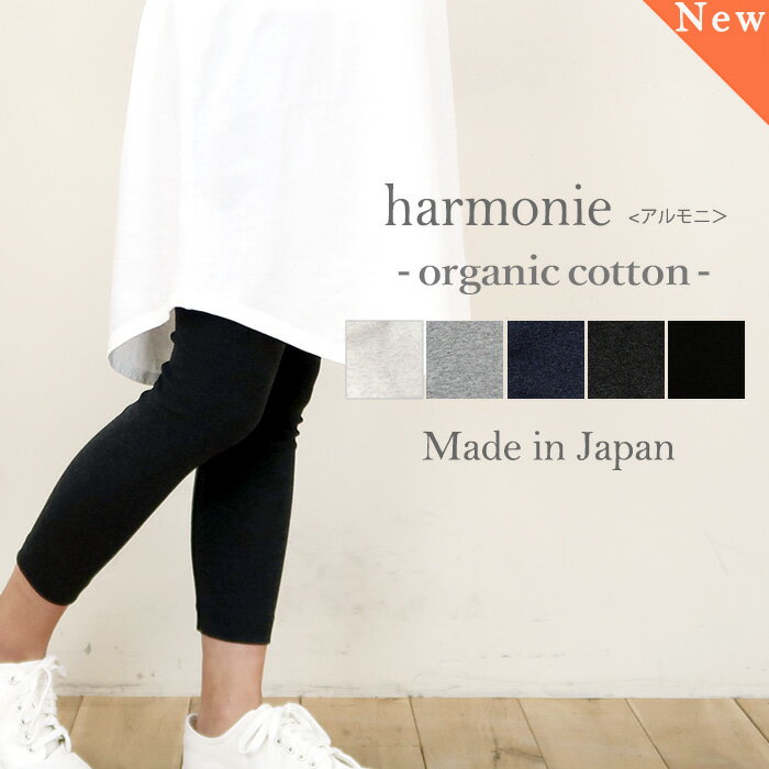 【メール便対応】harmonie-Organic Cotton-(アルモニ オーガニックコットン)杢フライス 無地8分丈 レギンス81920525 オートミール/グレー/ネイビー/チャコール綿100% 日本製 ラッピング対応
