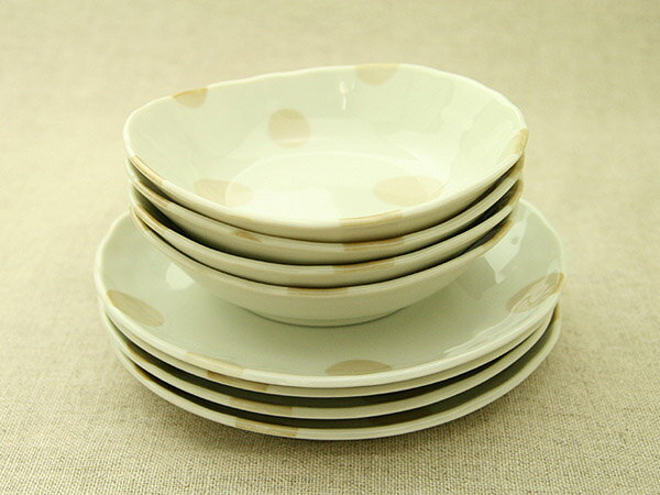 40%OFF お皿4枚小鉢4個・箱無し/ナチュラル/おうちカフェ【送料無料】 ベージュドット水玉アイボリープレートボウル8pcsセット・ おうちカフェにフィット♪